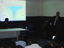 entre cientistas, alunos e profissionais aplicados, além de divulgar os diferentes métodos de aplicações e desenvolvimentos na área de estatística e ciências atuariais, teve início na noite da segunda-feira (22) e segue até a sexta-feira (26). Para o graduando do curso de Ciências Atuariais, Alyson José, Foi uma noite bastante proveitosa, porque pude tirar algumas dúvidas no quesito previdência social tanto de Sergipe, quanto em nível nacional. Espero que outros temas interessantes como esse sejam discutidos durante toda a semana, explicitou.