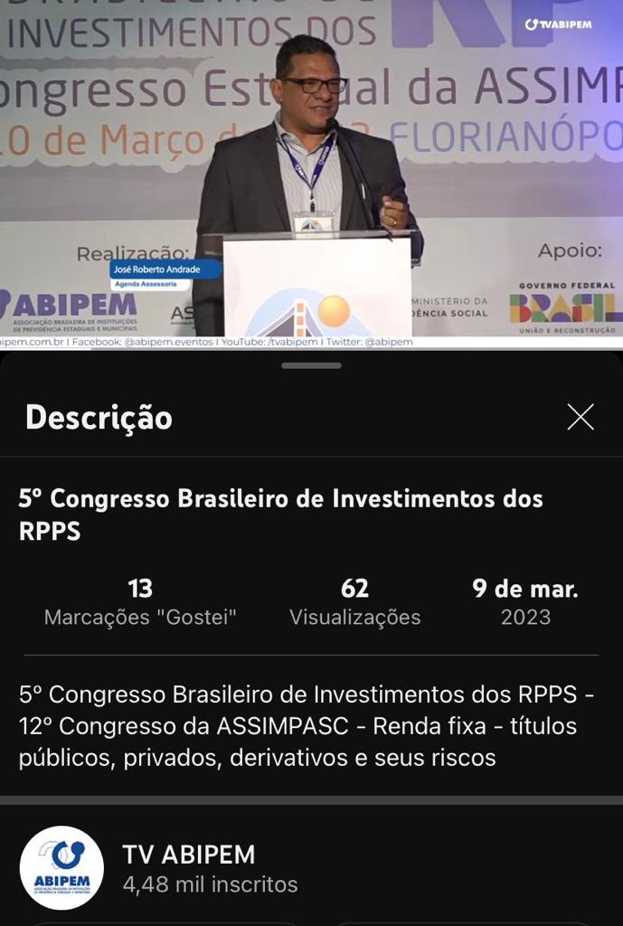 O Estado de Sergipe foi representado pelo SergipePrevidência no maior Congresso nacional de Investimentos para Regimes Próprios de Previdência Social (RPPS), o 5º Congresso Brasileiro de Investimentos. Nele, o diretor-presidente do órgão, José Roberto de Lima Andrade, palestrou sobre ‘Renda Fixa – Títulos públicos privados, privados, derivativos e seus riscos’.
